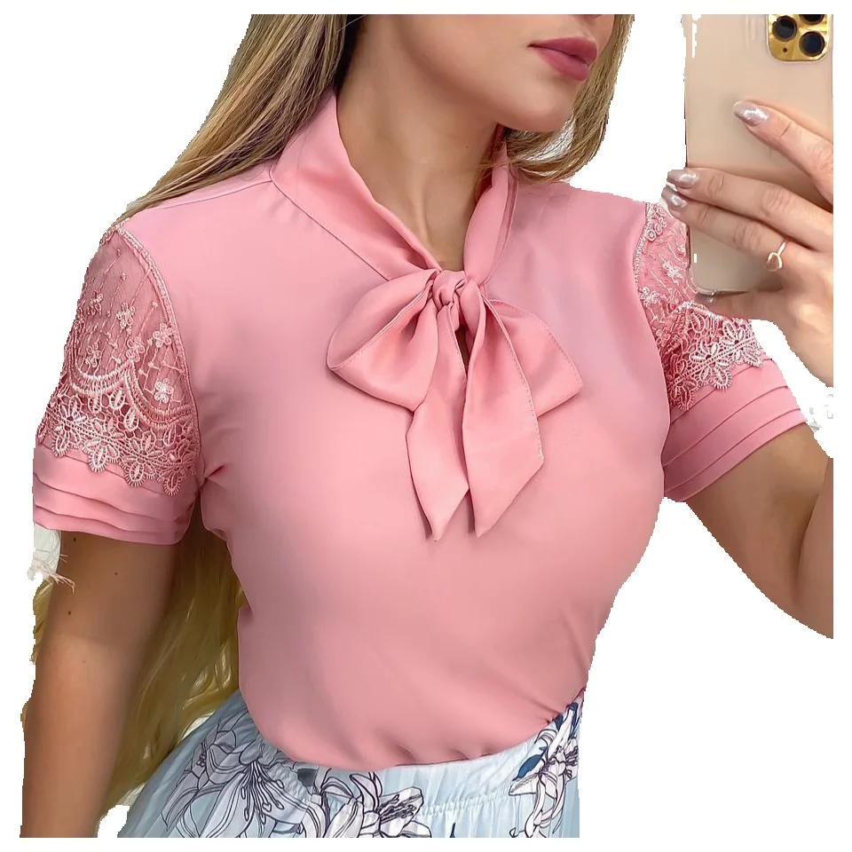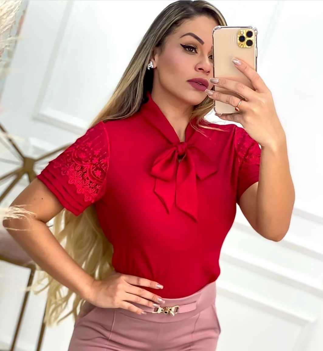 Blusa com laço para amarrar no pescoço.