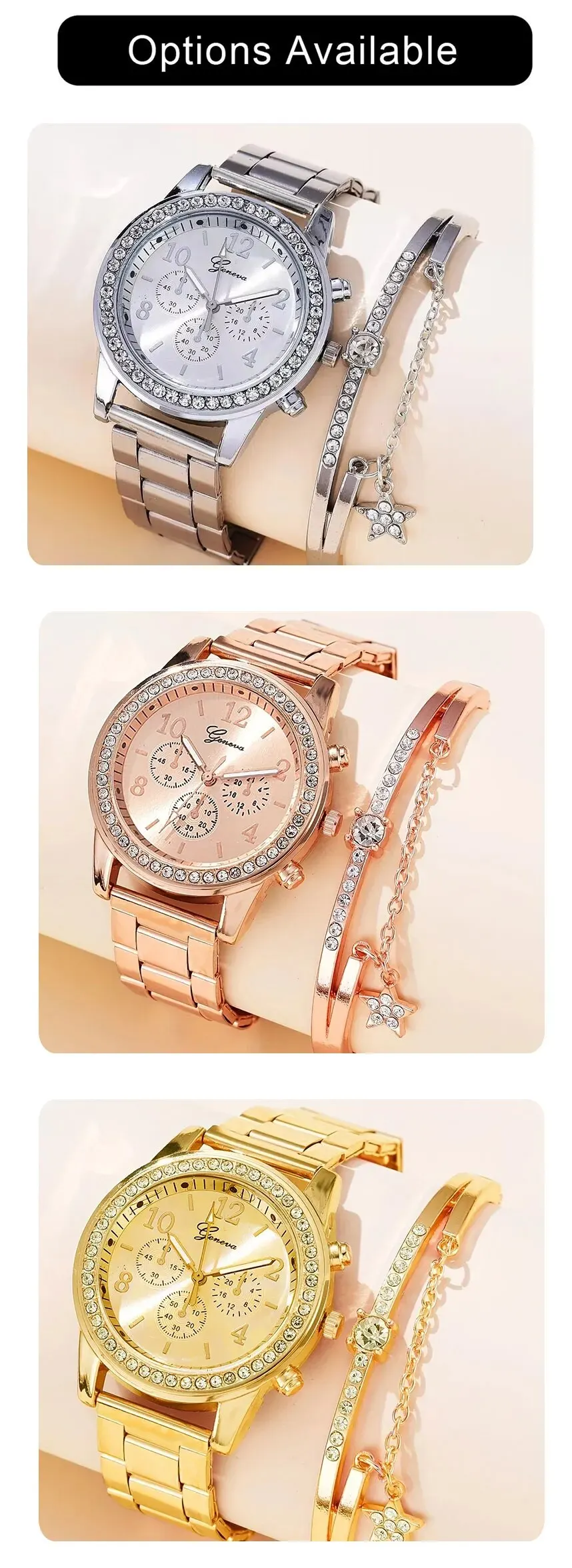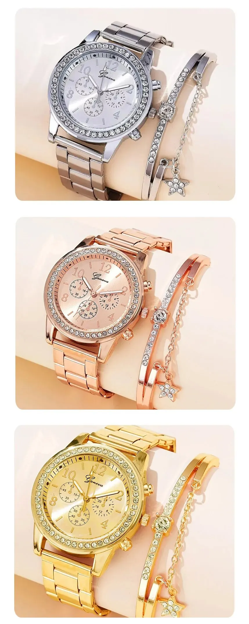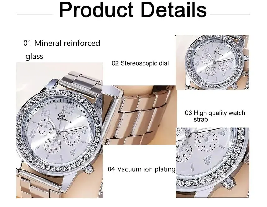 • Enfeites de diamante de cristal :O relógio é adornado com enfeites de diamante de cristal que adicionam um toque de elegância e sofisticação a qualquer look.